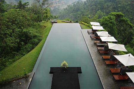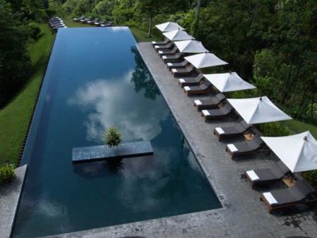 巴厘島度假酒店的無盡游泳池,特殊的邊緣設(shè)計(jì)讓泳池仿佛一塊沒有包邊的平鏡