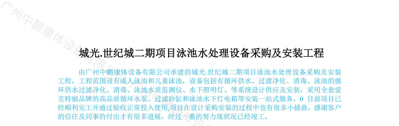 城光.世紀城二期項目泳池水處理設備采購及安裝工程